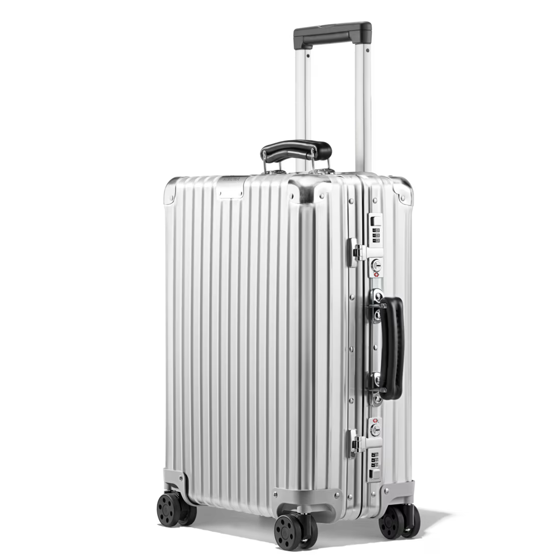 Crafted in high-end anodised aluminium with leather handles, the RIMOWA Classic blends heritage design with precision engineering – a timeless choice for discerning travellers.